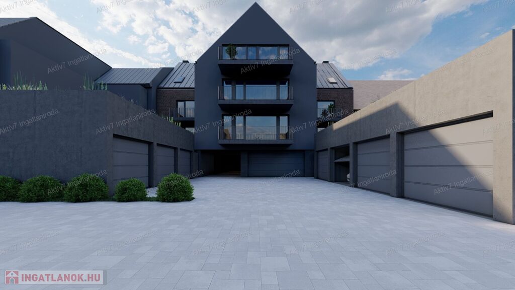 A most épülő társasházunk 4 szintes, liftes, 11 emeleti lakás (mindegyike erkélyes, vagy loggiás), a földszinten 2 lakás kertkapcsolattal, garázsok és beállók kerülnek kialakításra.