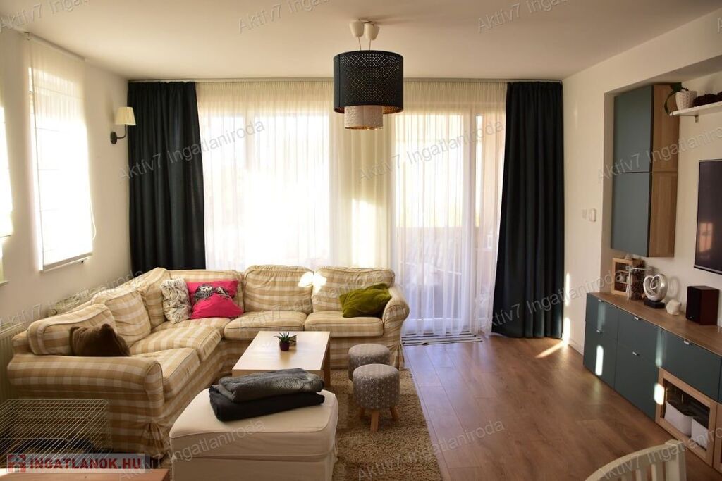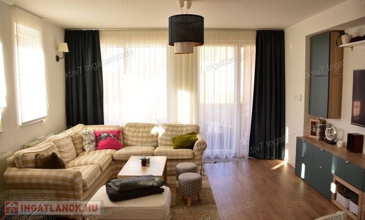 A 2005-ben épült társasház első emeletén lévő lakás 80 m2 területű, a sokak által keresett típusú, amerikai konyha nappali, két külön hálószobás, külön fürdőszoba és WC helyiségekkel