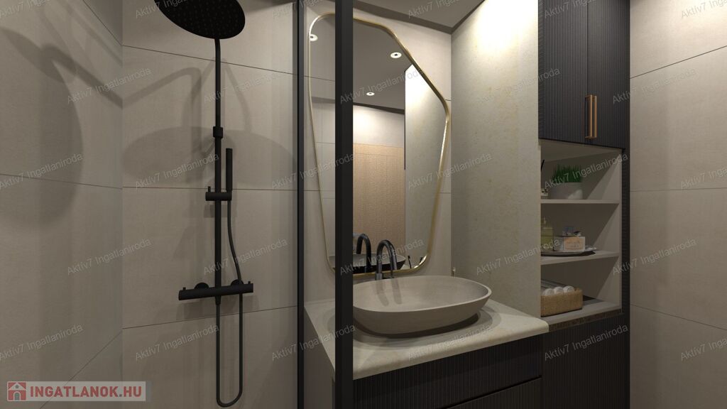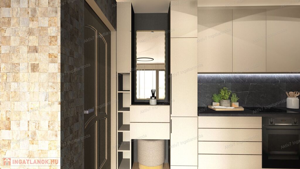 Teljesen készen van, burkolva, festve, elektromos redőnnyel, beltéri ajtókkal, szaniterekkel felszerelve kínáljuk. A vételár a konyhaszekrényt NEM tartalmazza.