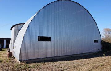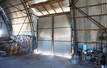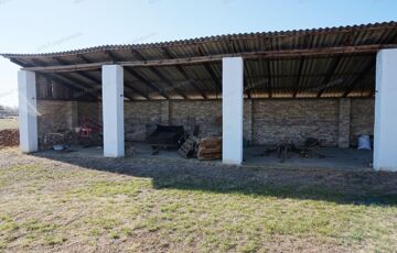 2. telek: 6.120 m2. Ezen a telken található továbbá egy 96 m2-es téglaépítésű gazdasági épület, (alápincézve), továbbá egy 203 m2-es - mezőgazdasági gépek és termények tárolására alkalmas - acélszerkezetű tároló épület.