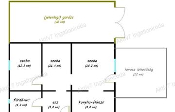 - Bővítési lehetőség: a ház a jelenlegi garázs (kb. 42 nm) irányába tovább bővíthető, így a meglévő alapterület igény szerint növelhető.